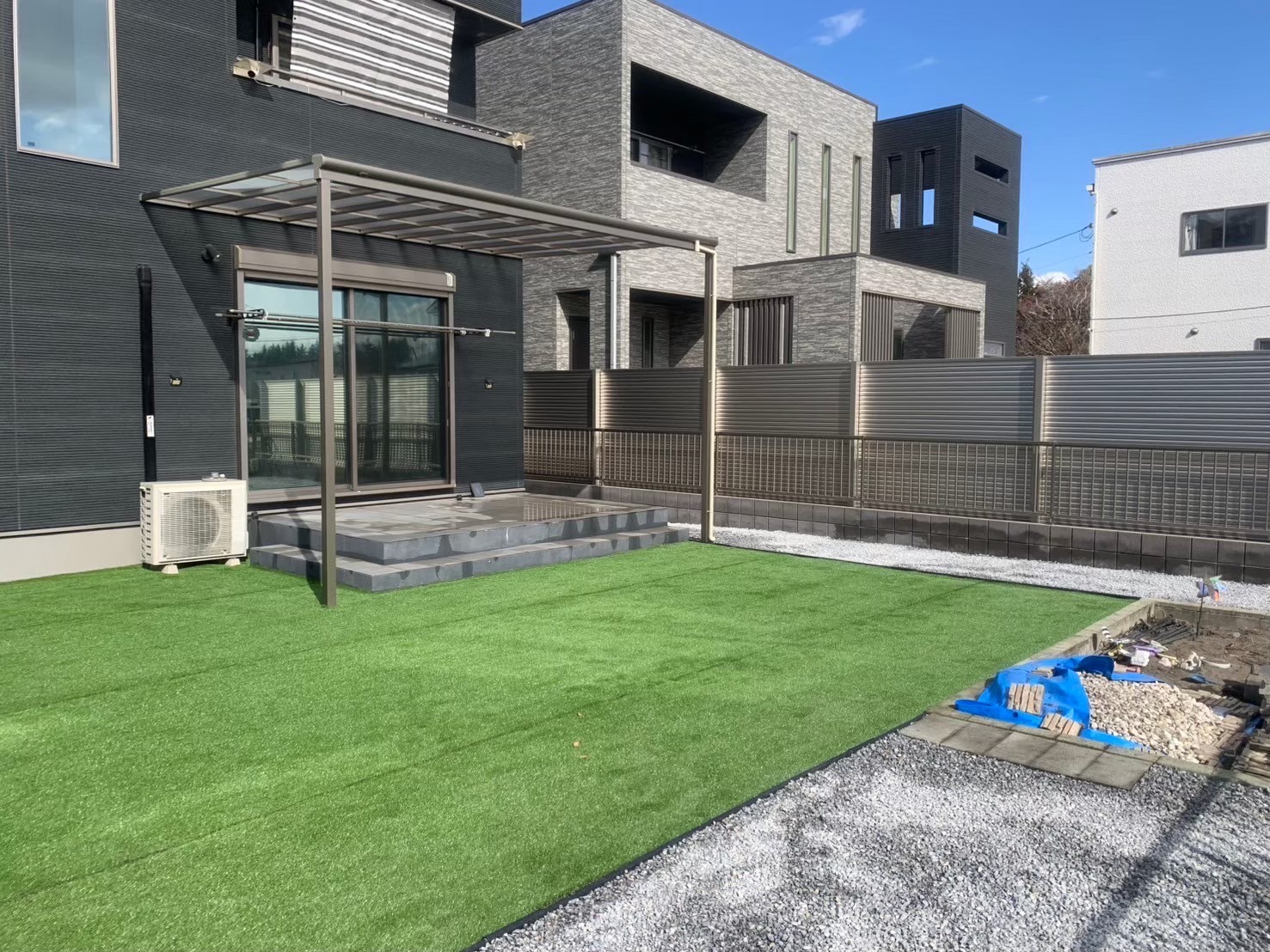 施工事例:今回の工事では人口芝工事とテラス工事の外構工事を行いました!